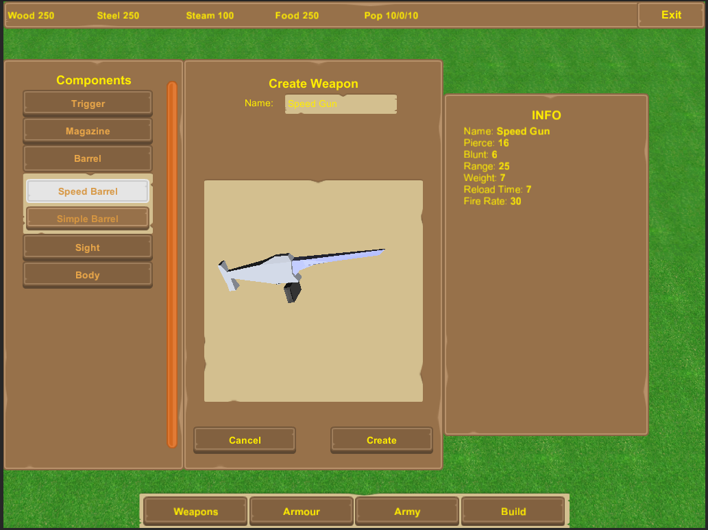 A RTS concept developed for BTech project. The main focus of the concept was to facilitate a greater sense of creativity for the players by allowing them to create their own units for their faction. By making the weapons and armour use a series of components, it made it possible for the various parts to be used interchangeably. Thus the player could create their own special units to use.
